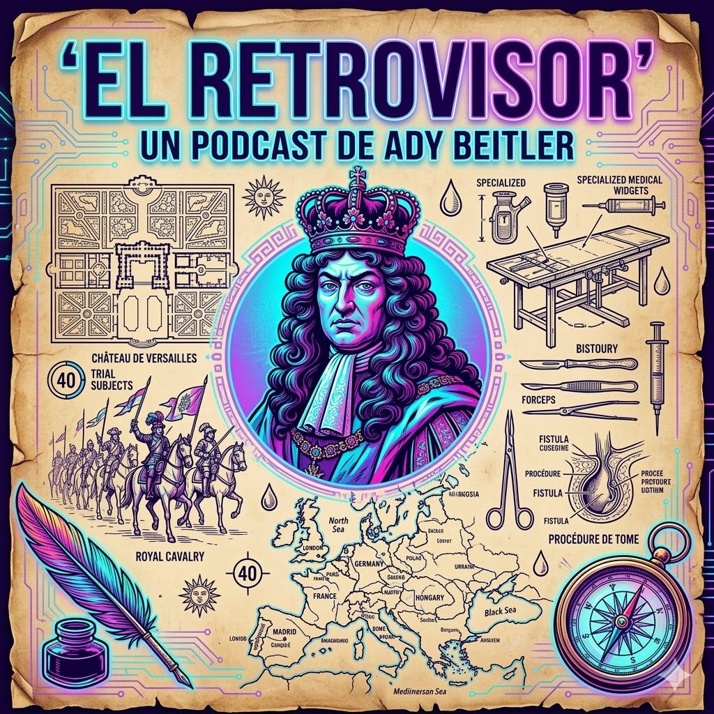 En este episodio de El Retrovisor, viajamos a 1686 para conocer el sufrimiento crónico y oculto del Rey Sol, Luis XIV. Descubrimos cómo un diagnóstico alarmante—una fístula anal—y la brutal intervención de un barbero-cirujano llamado Charles-François Félix, no solo le salvaron la vida al monarca, sino que cambiaron la historia de la medicina moderna para siempre.